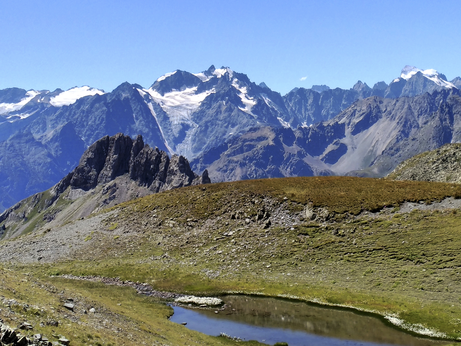 Una etapa preciosa que podríamos llamar “full lagos”. Hoy seguiremos el GR 54, atravesando paisajes de alta montaña y numerosos lagos alpinos. Cruzaremos primero el collado de la Ponsonnière y después el collado de Cerces, en un entorno espectacular. Durante la jornada caminaremos cerca del majestuoso pico del Grand Galibier, disfrutando de amplias vistas sobre este impresionante sector de los Alpes.